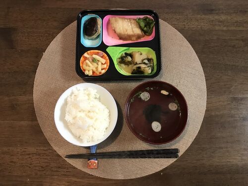 昼食 白身魚(メル)の蒲焼き 肉詰めしいたけ じゃが芋の鳴門煮 付け合わせ お吸い物(インスタント) 「鳴門煮」とは、鳴門海峡の渦にちなんだもので、渦巻状の切り口を見せる煮物料理のことを指すのだそうだ。一口で食べてしまったが、ソースの下は渦巻き…