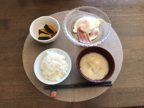 昼食 味噌汁(作り置き) ベーコンエッグ かぼちゃの煮物(作り置き) 作ってもらった。 夕食 スパゲティ(豚挽き肉、にんにく、ピーマン、人参、ズッキーニ) 味噌汁(なす、えのき、柚子) フルーツサラダ(じゃがいも、みかん、ミックスベジタブル) フル…