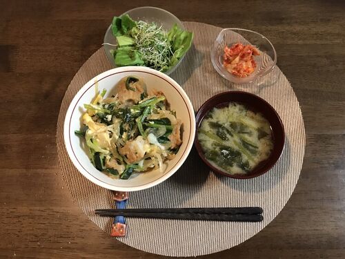 夕食 カツどん(トンカツ、玉ねぎ、小松菜、三つ葉、卵) 味噌汁(作り置き) グリーンサラダ(サラダ菜、アボカド、ブロッコリースプラウト) キムチ 昼食 味噌汁(作り置き) 銀鱈西京焼き サラダ(きゅうり、トマト、ブロッコリースプラウト) おうちごは…